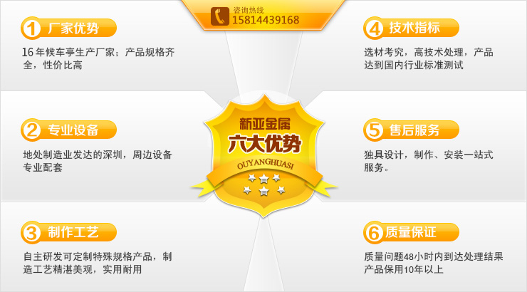 深圳市新亞金屬制品有限公司坐落于沿海經(jīng)濟(jì)中心——深圳,是國(guó)內(nèi)城市公共設(shè)施、交通設(shè)施、裝飾工程企業(yè)之一,是一家具有自主研發(fā)和設(shè)計(jì)能力的以公交候車(chē)亭為主導(dǎo)的綜合性金屬制品企業(yè)。